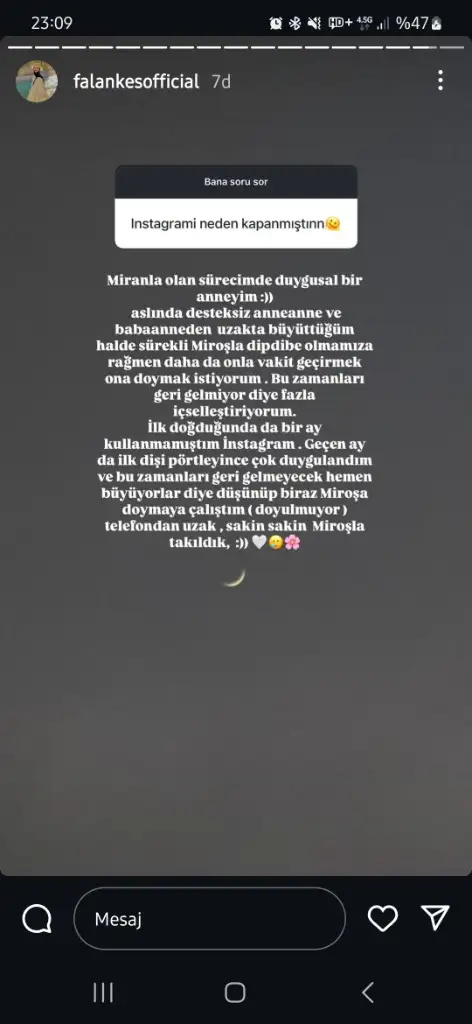 Ben instagramı kapadım 2 yıldan beridir de kullanmıyorum sosyal medya hiç bir şey yok kafa rahat bnm.Aman sakın sosyal medyanın gazına gelmeyin derim. Bazı hesaplar etkileşim düşünce uzaklaşıp geri dönüyor ki sonra etkileşimleri artsın. Hepsi böyle demiyorum ama çoğunluğu yaşan dolan. Bi ara ben de insta batağına düştüm ve keşfetim bebekle doldu. Yok 3 ayda nasıl emekledi yok 6 ayda parenda attı vs vs bebeğini övenler, yok efendim bebeğime nasıl 3 öğün 5 çeşit yemek hazırladımlar, hiç zorluk yaşamamış gibi yapanlar falan gına geldi. Bir bireyi en baştan yetiştirmek zaten yeterince zor ve her zaman da çok eğlenceli değil gerçekçi olacaksak.