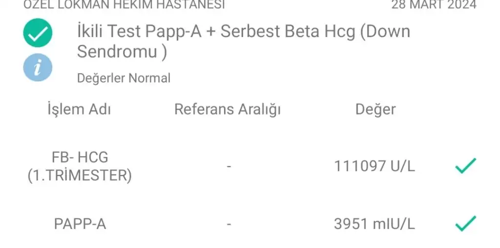 Bu ikili taramada ki kan sonucum. Gecen hafta yaptırdığım. Ama rapor olarak elimde hala bir belge yok. Sadece telde doktorum orta riskli yaştan dolayi dedi.