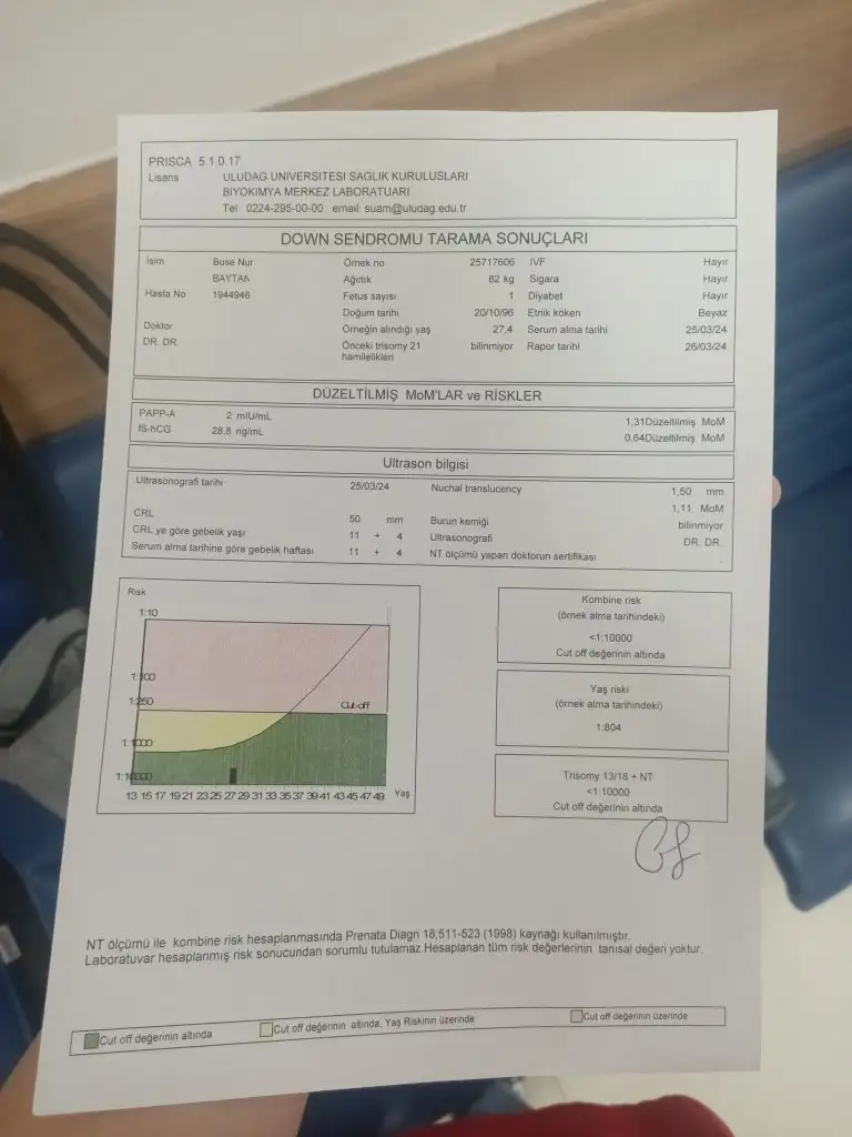Bu arada en altta gördüm riskler çok düşük gözüküyor hatta kendiminkini atayım karşılaştırın istersenizMerhabalar 2li tarama testim çıkmış şimdi İnternetten baktım ancak hiç anlamıyorum bu terimlerden doktoruma da ulaşamadım kontrol zamanıma da çok var yardımcı olabilecek vardır inşallah aramızda