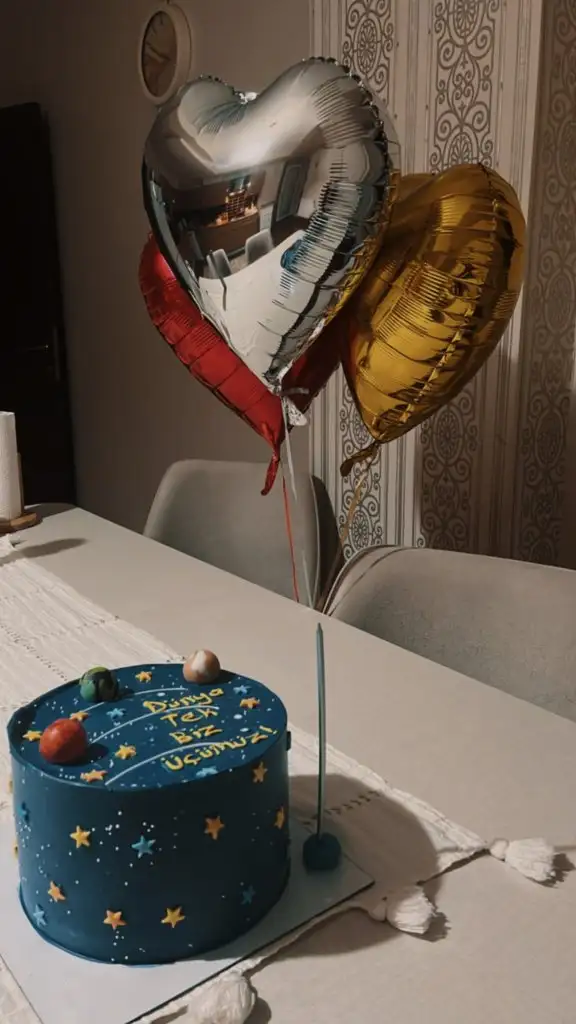 Ay ne güzelmiş pasta bayıldımay ben ilkinde bi pasta yaptırmıştım bak pastayı eklerim fotoğrafa sonra 3 tanede uçan balon almıştım sonra gece gidip onları yüksek bi yerden uçurmuştuk ama nasip olmadı ikincidede gizli yazılı mumlardan almıştım içinde baba oluyorsun yazıyordu güzel bi yemek hazırlayıp onu yakmıştım o da nasip olmadı bidaha kalırsam dümdüz dicem artık ben hamileyim ama doğurabilir miyim bilemiyorum henüz haberin olsun dicem