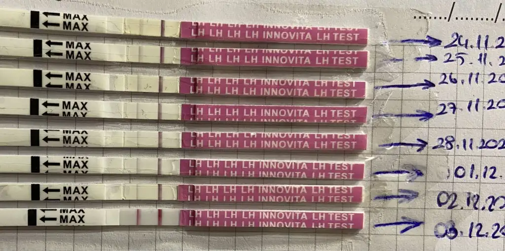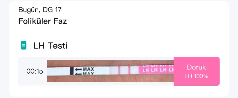 Dün tek gün olarak şeffaf yapışkan akıntı gelmişti. Testlerim bu şekilde bugün ilk defa pike yakın çıktı %41. Muhtemelen yarın pik yapar değil mi? Şeffaf akıntıdan 2 gün sonra pik görmüş olacağım bu normal mi sizce?? Koyu kırmızıları görmeye başlayınca heyecanlanmaya başladım çünkü önceki günler çok çok silikti 🥹🥹 Tedaviden önce döngülerimi 30-32 gündü. Yarın 17. Günüm olmuş olacak😇