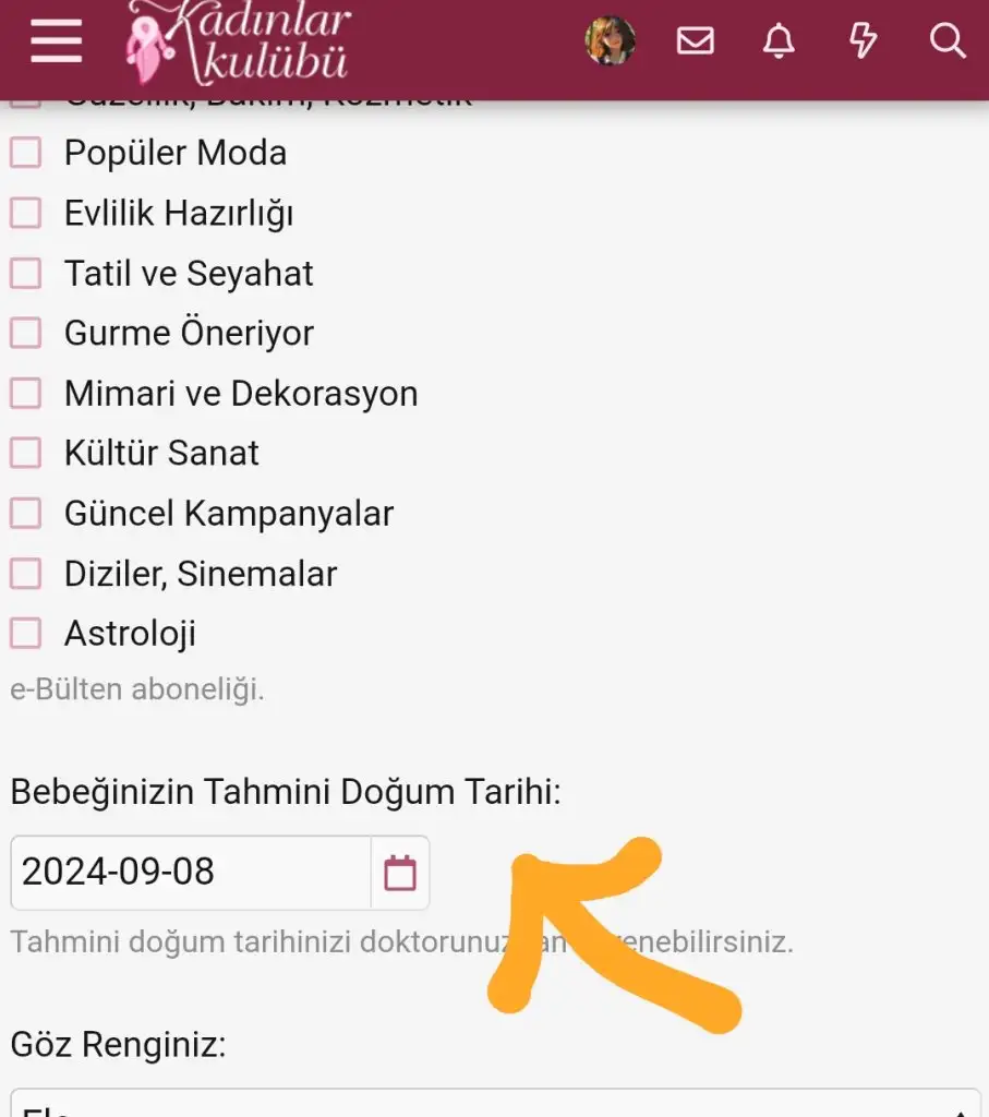Ardından hesap detaylarından bebeğinizin tahmini doğum gününü girin