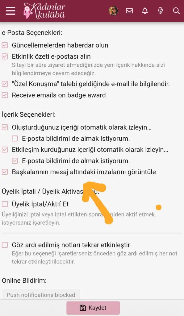 Daha sonra forum seçeklerinden Başkalarının mesaj altındaki imzalarını görüntüle kutucuğunu işaretle