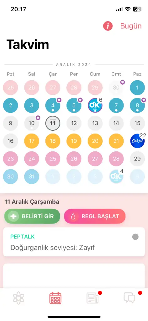 Bir değişiklik olarak ovulasyon testi kullananlar için pik tarihini de ekledim. Eğer isterseniz onu da takip ediyorsaniz yazabilirsiniz.