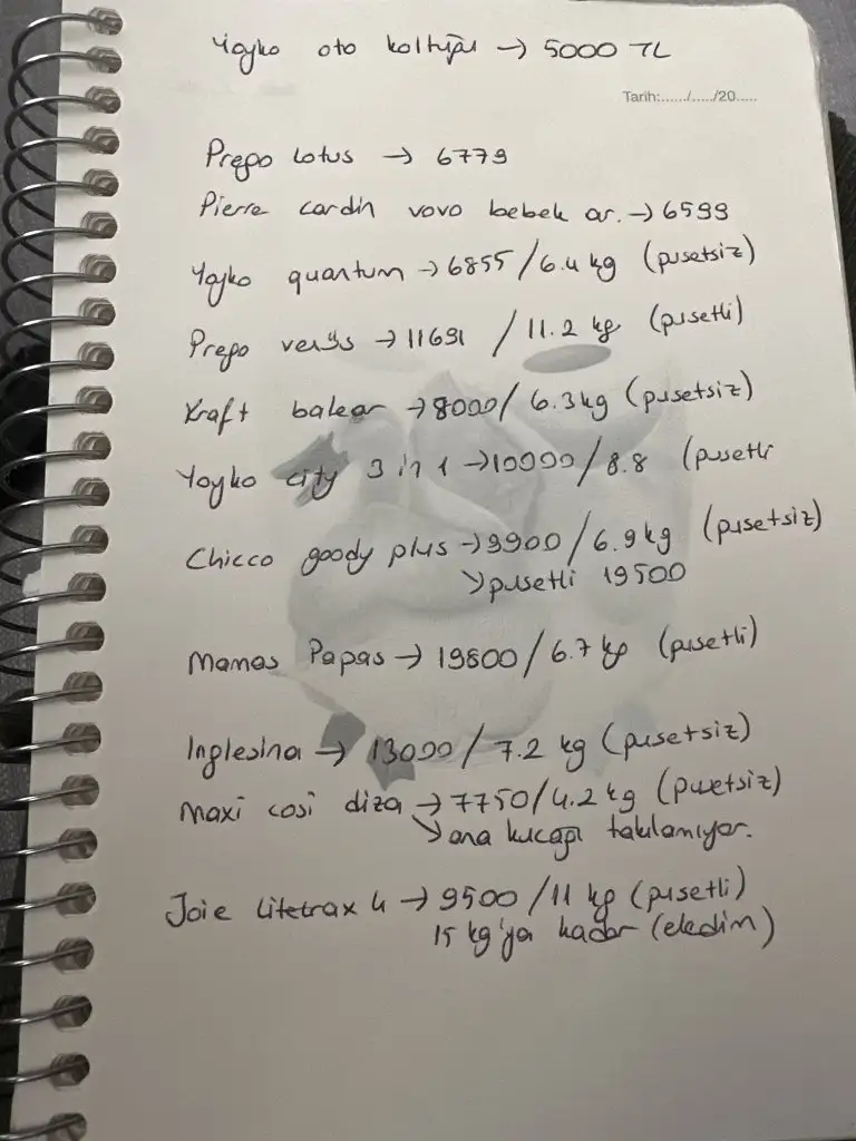not:cybex ya da doona yı eklemedim. Fiyatları özellikle yazdım. Belki indirim de ciddi indirim yakalarım diye