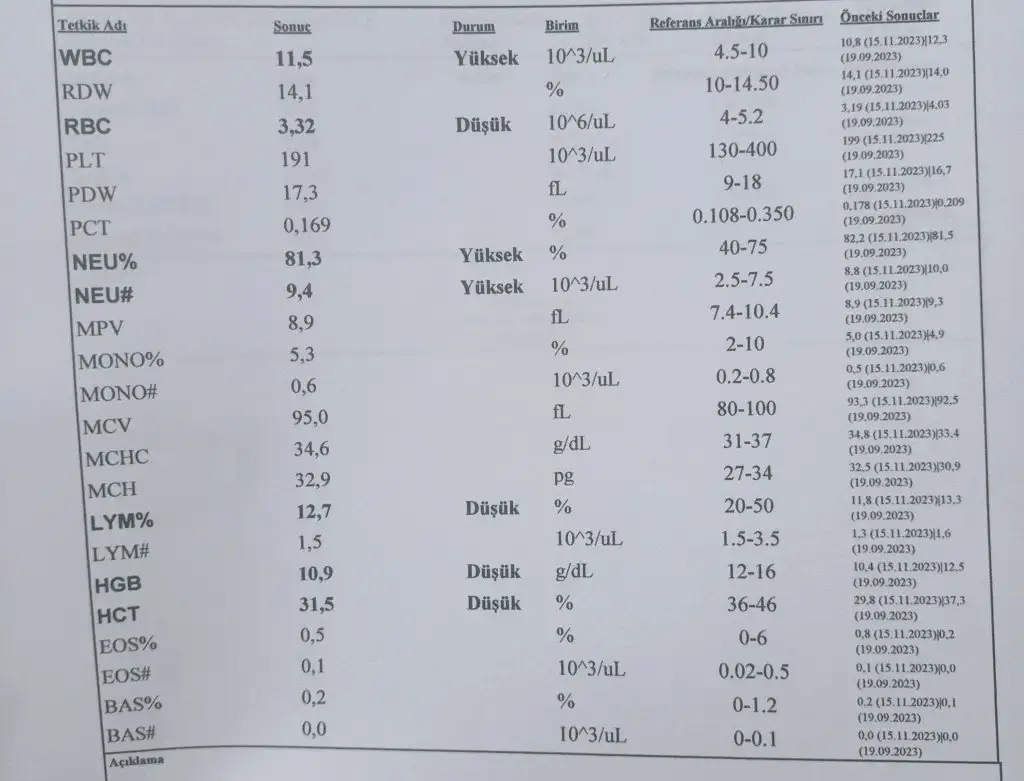 Ben 2 içtiğim halde yükselmemiş canım . Diğer değerlerin nasıl rbc ,wbc gibi .