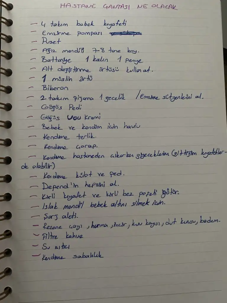 Çok güzel canım sadece hastane terlikleri çok ince ya kaput gibi belki ayrı bir terlik götürmek isteyebilirsin rahat etmek içinKızlar kendimce hastane çantası için liste hazırladım. Deneyimli annişler sizce eksik var mı? Lütfen yazımla dalga geçmeyin