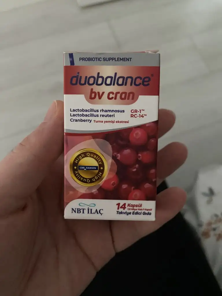 Ben zaten probiyotikli vitamin kullanıyorum canım adı Vinelac ama ben rahimde acı batma sızı var 3 gündür neden olur dedim o da enfeksiyon oluşmaya başlıyorsa ondan olur dedi fotodaki vitamini kullan ilaç vermiyim geçirir o dedi ondan aldım bende şimdi 3 haftalık bir vitaminmiş devamlı değil bu enfeksiyon varsa onları engellemek amacıylaymış adı duobalance bv cran diye bir şey kızılcık varmış geçen forumda birinin yazısında gördüm bende vajinal enfeksiyon için kızılcıkla bir şey yapın diyordu şansa doktor da bana böyle bir şey önerdiHangi probiyotik o canım . Benim probiyotik bitmek üzere belki değiştiririm