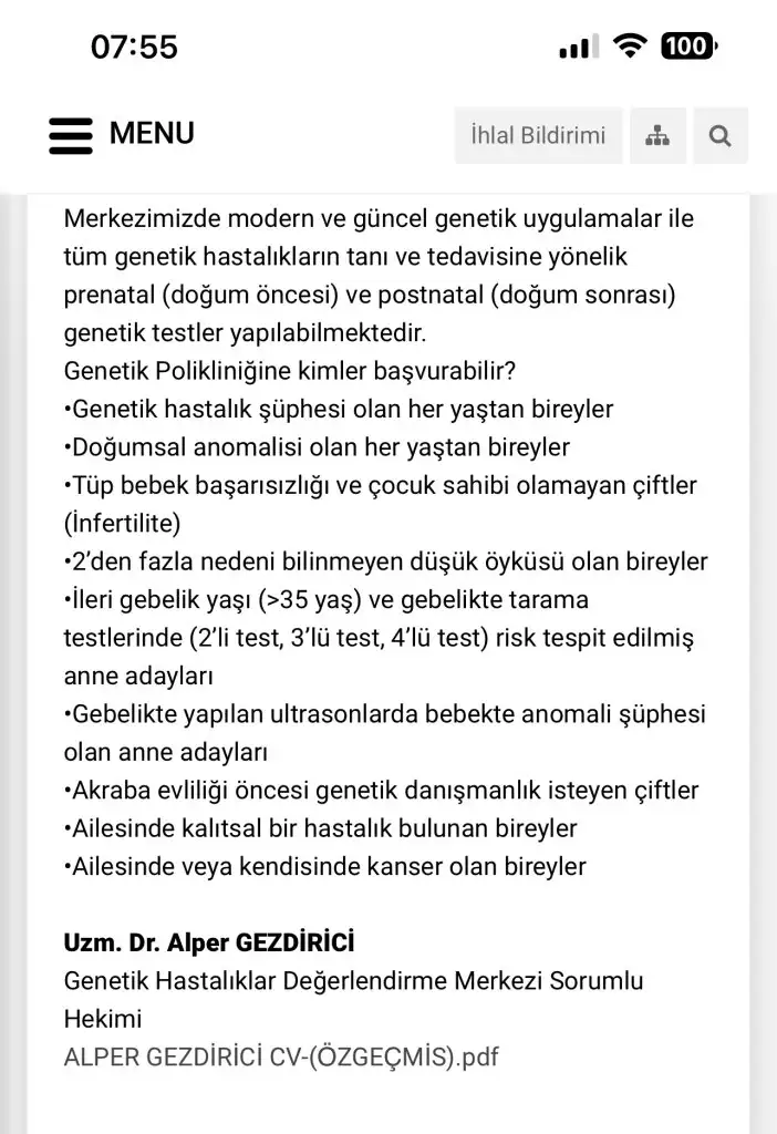 Sizin bu sebeplerden biri var mıydı ? Hastane sitesinde şartlar sunmuşlar.Merhaba,ben bu testi tedavi sürecine başlamadan önce şehir hastanesinde genetik bölümüne giderek yaptırmıştım. Araştırıp bulunduğunuz şehirde genetik bölümü olan bir hastaneye gidebilirsiniz.