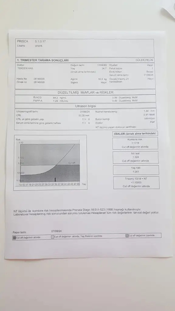 Yaa benim ki 3.4 çıktı sınır 2.5 ama yine de tedirginim yani. Bana direk perinatolog önerdi doktorum kendi de prof ama bakmıyor sanırım ona da geçen ay 11 temmuza randevu bulabildik neyse ki haftamız denk geliyor ya 21-22 gibi oluyor. Çok sevindim fetal DNA sonucunuza ben de çok zor beklemiştim sağlıkla kucağımıza alalım inşallah 🤍