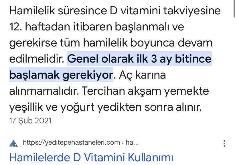 Canım vallahi öyle birşey yazılmış ama sebebini hala anlamadım neden olduğu yazılmamış ilginç ve ilk defa duydum ben mesela 1000 ıu bir damla kullanıyorum. Çoğu hamile arkadaş da başlamış ve başlayıp olumsuz sonuç görende görmedim sonuçta bunlar vücudun ihtiyacı ama yani alınırsa bebekte şu oluyormuş diyebilen arkadaş varsa aydınlatırsa daha çok seviniriz.Özel bi durumum yok. Sağlık bakanlığı ve bazı üni hastanelerinin sayfalarında da okudum sonrasında. Her doktorun yönü farklı olabilir tabi.