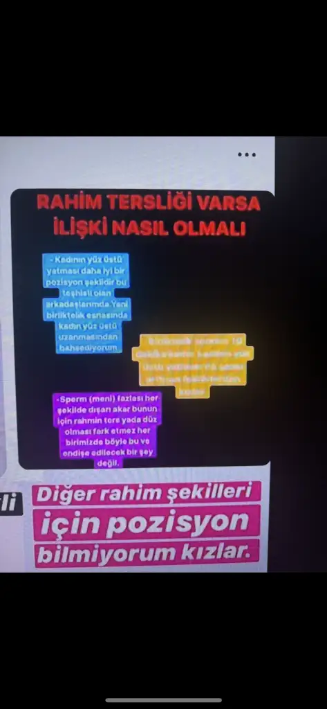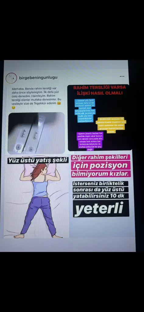 Canım resimdeki gibi olup karnına yastık koy poponu yükselt ve sonunda da bu 45 dk hareket etmeden yat doktor sana dediğinin aynısını bana dedi evet gebeliğe engel değil ama pozisyon ile işin kolaylaşa bilir inşallah dene de işine yaramış olsun ben bu ay deniycem adetim bitinceBenim de rahmim arkaya dönük felan bişey demişti geçen sene doktor canım ama gebeliğe engel bir durum değil dedi bende çok umrsamamistim çok afedersin terse dönük nasıl oluyo özelden yazarsan sevinrim