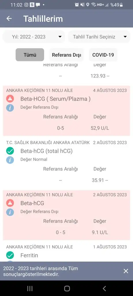 Sonucum çikti ikincisi 86.38 neredeyse iki buçuk katı artmışCanımcım moralini bozma lütfen benim ikimci değerim senin ilk değerinden düşük artış oranına baktı doktorum artış oranı iki katıysa iyidir dedi üçüncüyü de ver dedi daha da verme dedi. Sen de kan vermeye gidince kanını ver ve çık ordan moralini bozan insanlarla muhattap olma lütfen kendine bu arada bir de bul . Rabbim hayırlısını sağlıklısını nasip etsin bizlere inşallah. Sınucun bugün çıkacak mı
