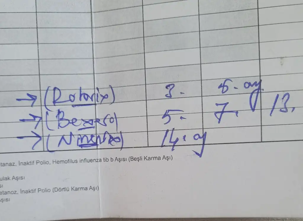 Bizim doktor aşı kartına bu şekilde yazdı.Ben hem meginkok hem bexero ikisini de yaptircam ama ikisi aynı zamanda oluyor muydu unuttum. Önce meginkok mu yapılması lazım acaba.