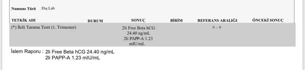 Merhaba ikili sonuçlarım çıkmış ama mesai bitince öğrendim anlayan birisi var mı acaba yaşım 25 ense kalınlığı normal çıkmıştı bunlar da kan sonuçlarım yardımcı olabilecek var mı 😇