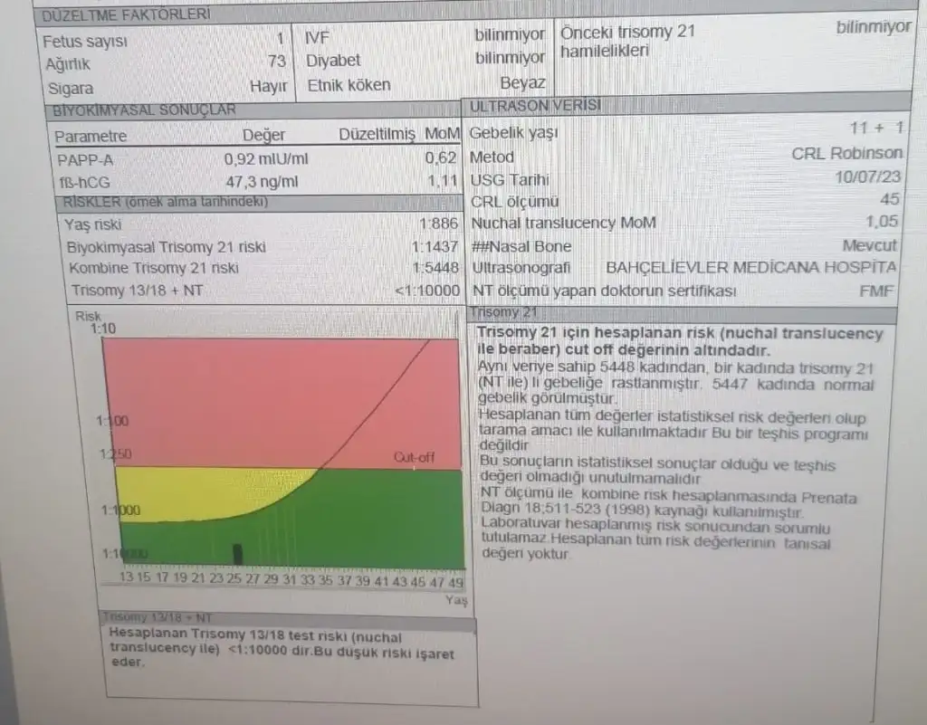 Kızlar ikili tarama testimin sonuçları e nabızıma düşmüş. Hiç anlamıyorum doktorumda izinde size zahmet anlayan bakabilir mi