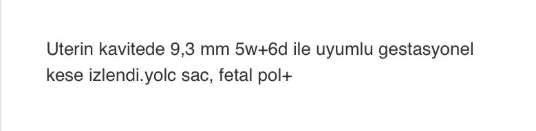 İkisi de olabilir.bazen hafta yazar 5w+6d gibi bu 5 hafta 6 gün demek.Atmaya çalıştım ama olmuyor canım görsel hiç atamıyorum buraya. Ama GS falan yazmıyor. Cm olarak mi yoksa mm olarak mi yazılıyor
