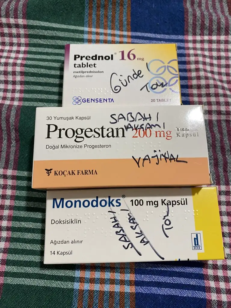 Canm ben prednol kullanıyorm progestanında iğnesini kullanıyorum ilk defa iğnesiz duydumYok canım hiç iğne yazmadı sadece çatlatma iğnesi yazdı transfer öncesi vuralacaksın dedi birde bu ilaçları yazdı o kadar