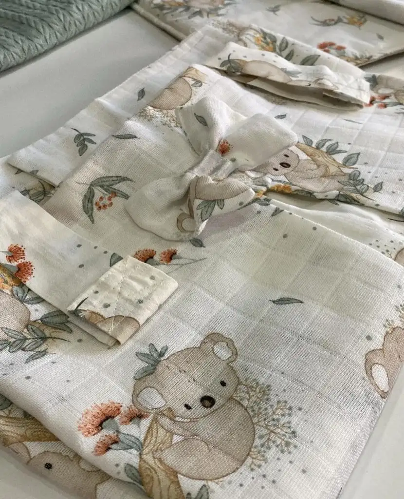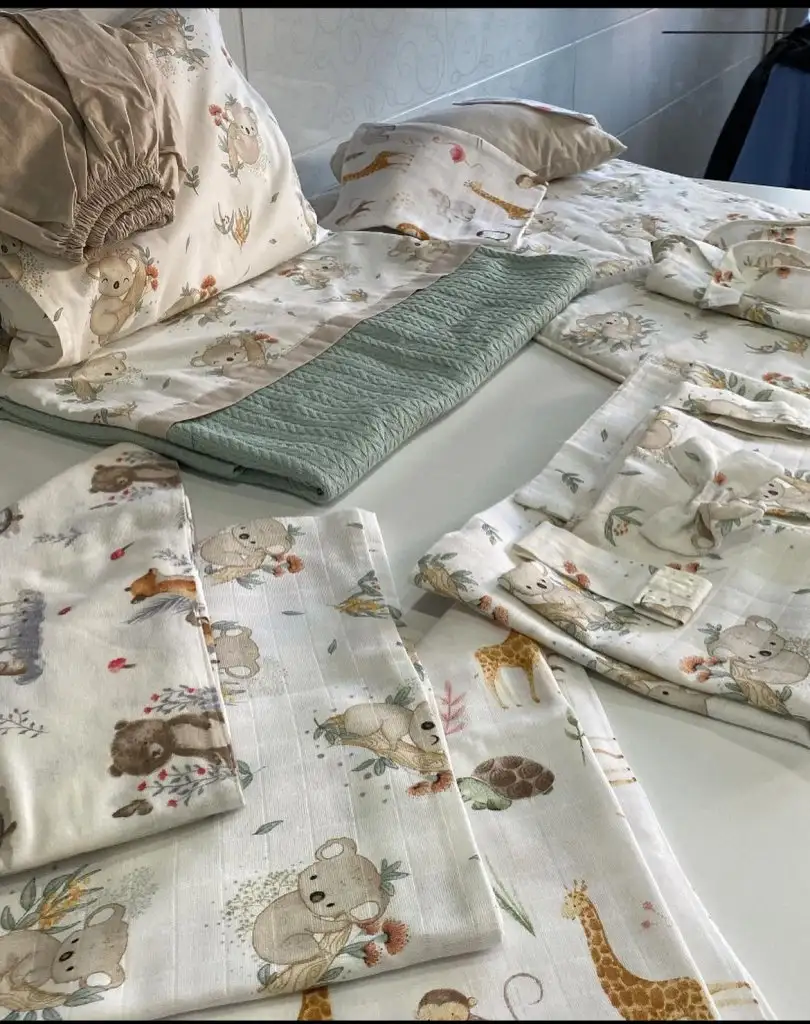 Kızlar size bahsetmiştim annem kumaş alıp Müslin kundaklar yatak örtüsü yaptıracak diye bugün geldi ürünlerim çok güzel olmuş iyi ki böyle yaptırmış yumuşacık her şeyi takım kalan bezlerden de hep ağız ve sırt mendili yapmış puset örtüsü ve emzirme önlüğü de içinde