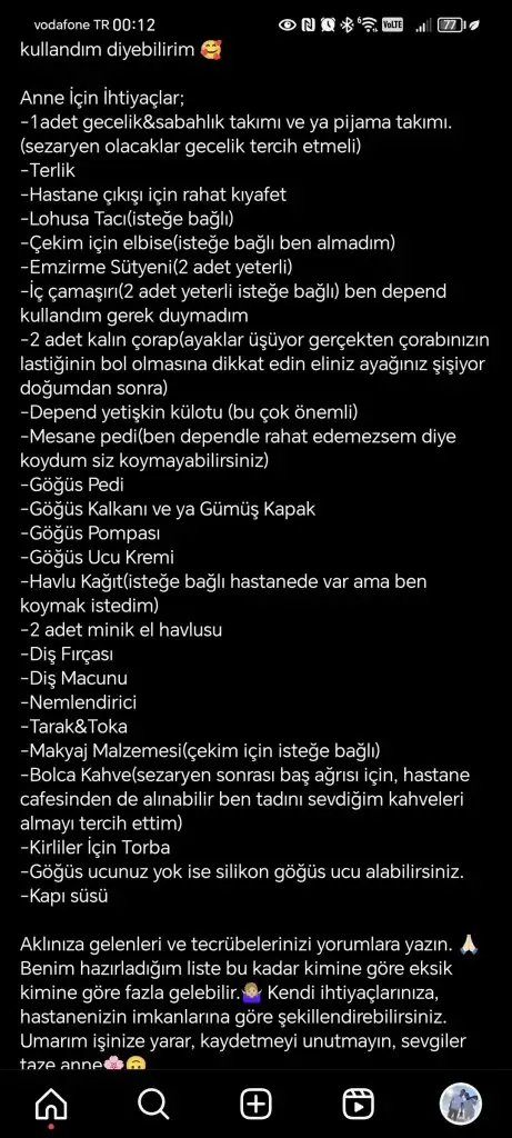 Kızlar hastane çantası hazırladım hazırlamayanlar için fikir olsun buraya da yazayım dedim;