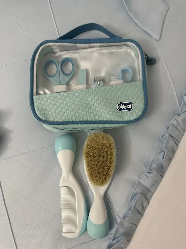Saç fırçası orijinal keçi kılı olan fırçalardan tercih ettim konak oluşumuna iyi geliyor yumuşacık yenidoğana güvenle kullanılıyor. Tırnak bakımı içinde törpü almayı düşünüyordum ama videosunu gördüm tırnağı çok hızlı törpüledi ayarlayamazsam dibine kadar törpülerse diye korktum tırnak makası aldım.Ay ne eksik bisey eksik diyordum tırnak makası saç fırçası yok çocuğun ne alayım set halinde mi alsam