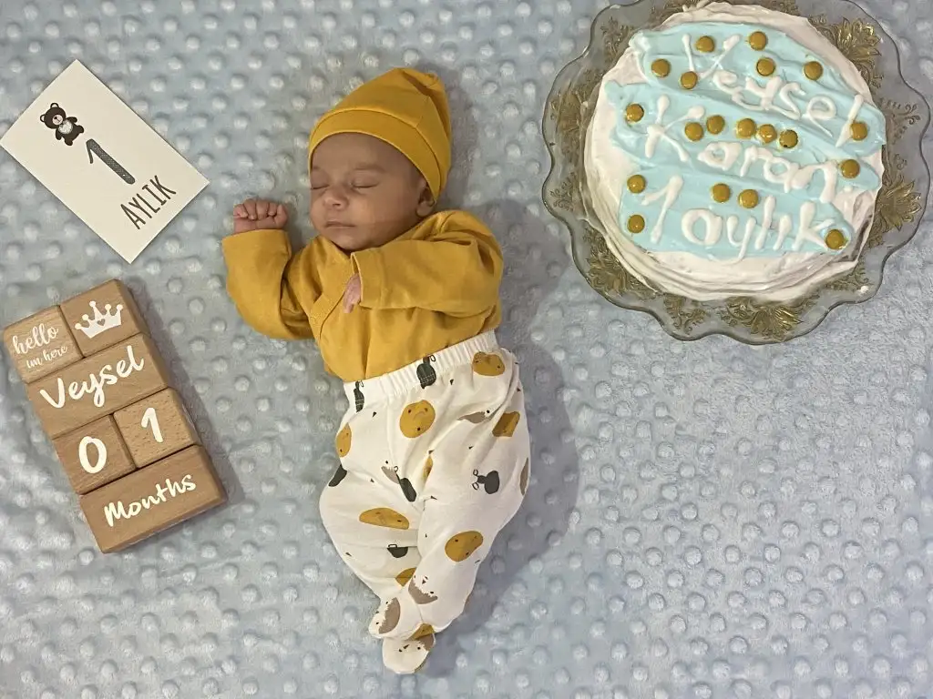 Bebiş de pasta da harikaKızlar bugün hiç giremedim mesajları okuyamadım 1 aylık hazırlığı yaptım sizede foto atıyorum