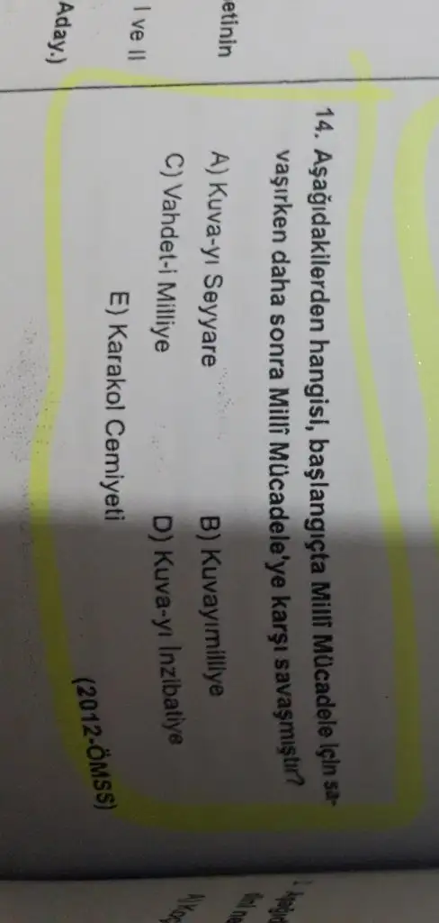 Bir de zaten kuvayi seyyare de kuvayi milliyenin bi kolu(cerkez ethem önculugunde kurulan?). Neden onu almadik?