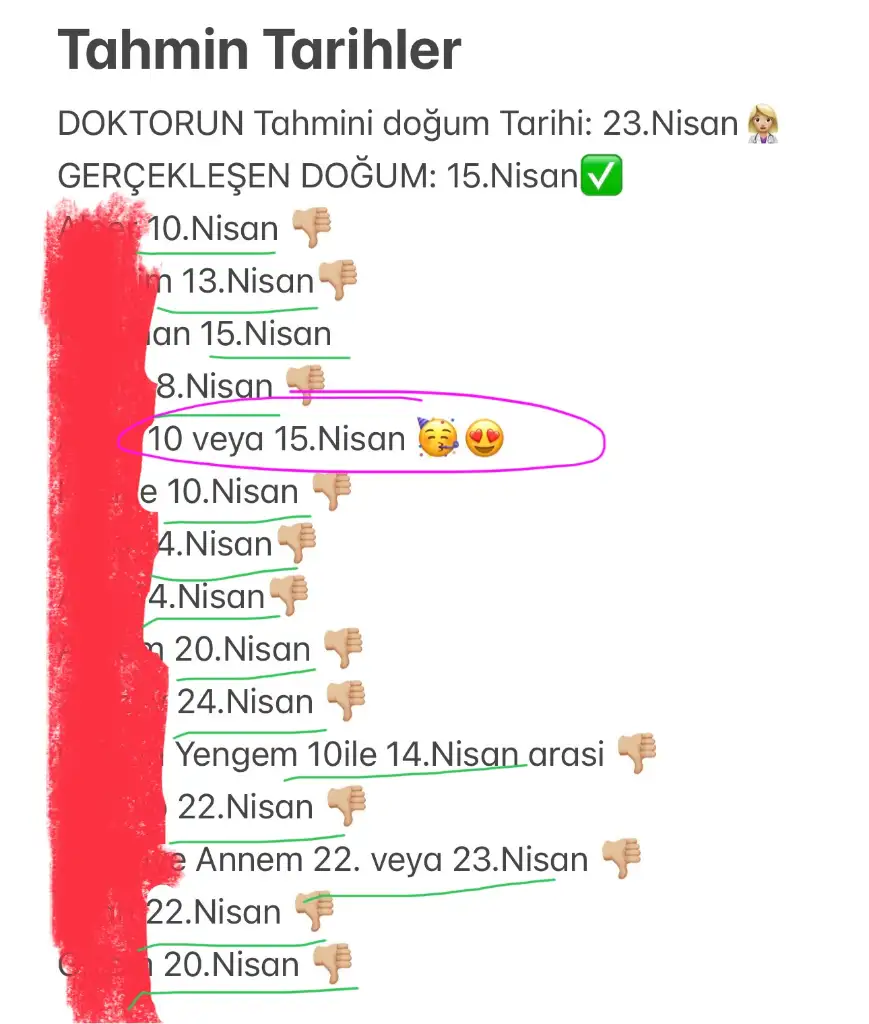 Ay ne güzel şeyler bunlar imreniyor insan bazen cidden benimde kendi ailem çok hevesli bebişime ama kv gile inanin ki sanki büyük günahlardan birini islemisim gibi kendim söyleyemedim hamile olduğumu son iki ayım kaldı mesela bebekle ilgili tek kelimeleri olmadi 7 aydırKızlar bakın 2023de Oğlum doğmadan herkezden tahmini doğum tarihi almıştım sadece bir kişi doğru tahmin etmişti bakın listeyi buldum atıyorum