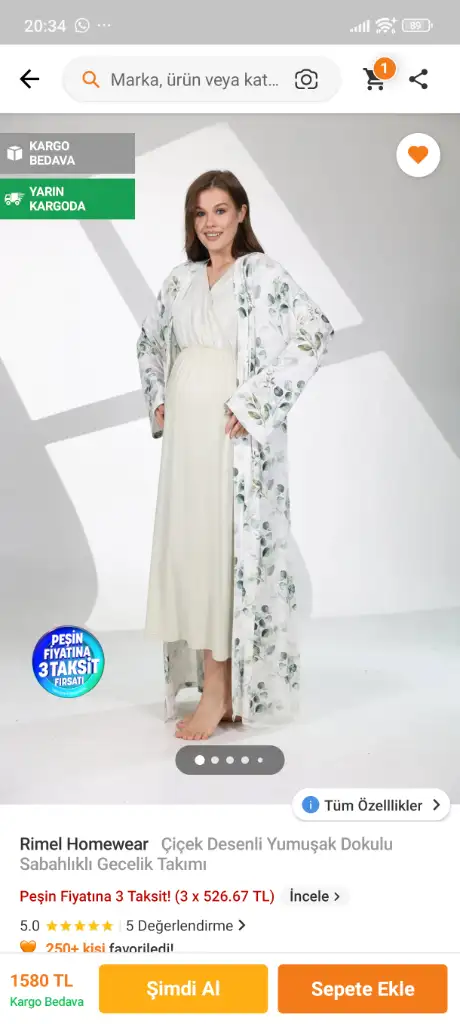 Rengi filan tam sen zatenKızlar bir tane daha geceliğe ihtiyacım vardı, haftalardır bakıyordum beğendiklerim hep 3 bin üstüydü, birkaç kez giyerim diye elim gitmedi az önce şunu görüp aldım direkt![]()