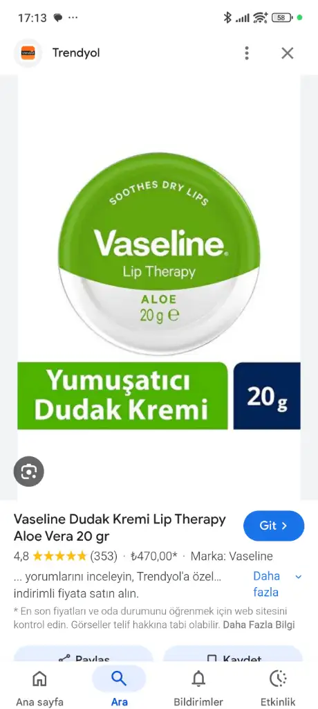 Canımm vaseline markasının dudak koruyucusu var. Gerçekten ne aldıysam bir şeye yaramadı ama bunu gece sürüyorum sabah mis gibiBencede ankara bizi kuruttu iyice bende öyleyim pul pul dudaklarıma kadar:/