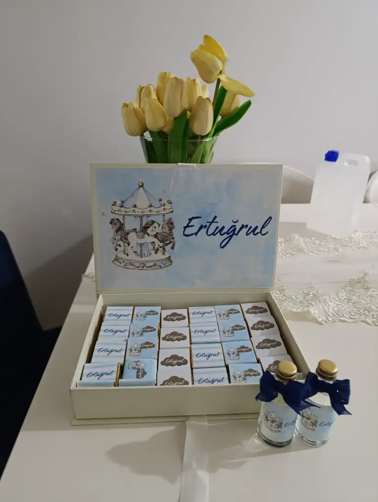 Canım ben çikolata yaptırdım, onlardan da etiket aldım kolonya şişesi yaptık evde. Eminönünden malzemelerini alıp evde kendimiz yaptık.Kizlar bebis icin hediyelik ne yaptirdiniz ya veya ne yaptirmayi dusunuyorsunuz