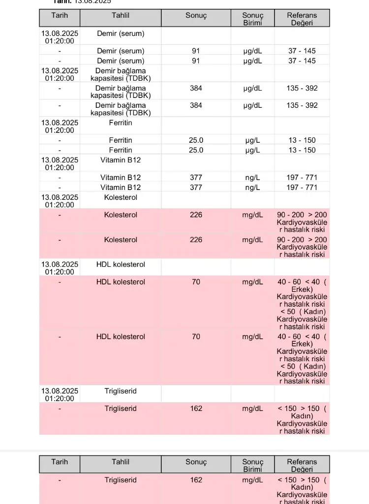 Benimde bu şekilde seyrediyor inip çıkıyor herhangi bir şikayetim olmayınca doktorum dikkat etmedi ama takip et sen yinede artan bir şikayetin yoksa sıkıntı olmaz inşallahGünaydın kızlar Sağlık ocağında tahlil vermiştim kolesterol yuksek çıkmış böyle bi skinti yaşayan varmı