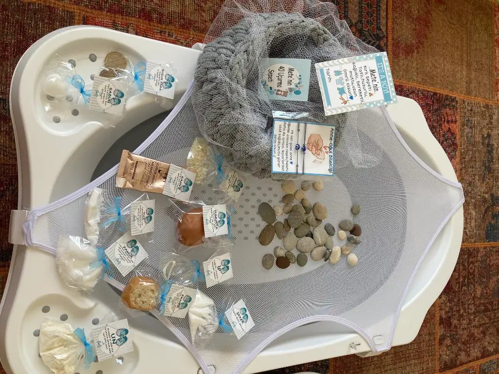 Yaaa çok güzel olmuşBen yaptırdım Trendyoldan bir sepet almıştım banyosuna dizdim sahilden de kırk taş topladım onları dizdim annem yumurta kabuğu ile kırk su döktü akşam da aile arası yemek yedik duamızı ettik kendimizce hatta ilk kez az biraz süslenip foto cektik eşim ve bebeğimle hatıra kalsın diye bana iyi geldi