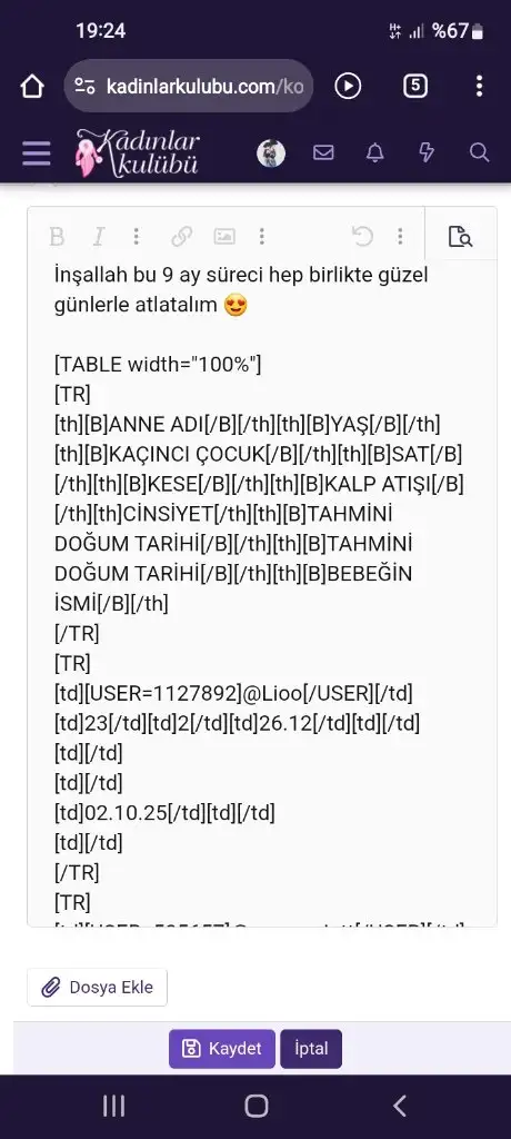 ANNE ADI YAŞ KAÇINCI ÇOCUK SAT KESE KALP ATIŞI CİNSİYET TAHMİNİ DOĞUM TARİHİ TAHMİNİ DOĞUM TARİHİ BEBEĞİN İSMİ Lioo 23 2 26.12 02.10.25 @yaasemintt 38 2 26.12 02.10.25 Ksknnkymtt 26 25.12 5+0 01.10.25 @deadline Esmoss60 30 1 30.12 06.10.25 @nurovic 43 3 @symgkcb 1 27.12 5+3 03.10.25 @Hayaldunyasi197 32 1 27.12 03.10.25 @fufucum 34 1 01.01 @Gazel2110 37 3 30.12 06.10.25 @rozatulip 25 1 13.10.25 B Bluehappiness 31 2 27.12 03.10.25 @Ugurlu000 38 1 29.12 05.10.25 @Pepenin babaannesi 27 1 29.12 5+1 05.10.25 @kimyonkokusu 30 1 27.12 4+6 03.10.25 @EylulY 31 2 04.01 10.10.25 @aegamze 28 1 01.01 08.10.25 H Hasretimm123 27 1 07.01 13.10.25 @vck 25 1 22.12 5+3 01.10.25 @lucito 08.01 15.10.25 @Dua ile 29 1 02.01 09.10.25 @ceylandrm 27 3 28.12 04.10.25 @gecmeyenzaman 37 1 30.12 08.10.25