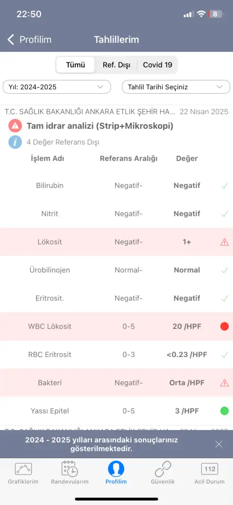 Bnm de seninkine çok yakın 2+ birde 15 wbc hamilelerde bu değerler normal kabul ediliyo diye biliyorm.Kızlar geçen hafta vermiştim doktor sonucuma bakmadı bile perinatoloji olmasına rağmen unuttumu da bakmadı anlamadım. Sizce enfeksiyon varmı? Kasıklarıma arada ağrı girer ama 5-10 dkkya geçiyo ama belim ara ara çok ağrıyor sizce enfeksiyon mu var?