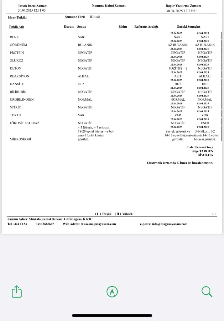 Doktorum sezeryana girdi 3 te gidicem yine ama idrar testi sonucum çıktı keton çok şükür negatif oldu ama yine enfeksiyonum başlamış bide idrarda kristal falan çıkmış bakalım doktorum ne dicek atayım size de bakın bi