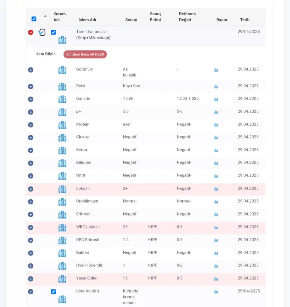 Verdim tahlil. Kendim baktım sonucunaKuzum bir idrar tahlili ver istersen