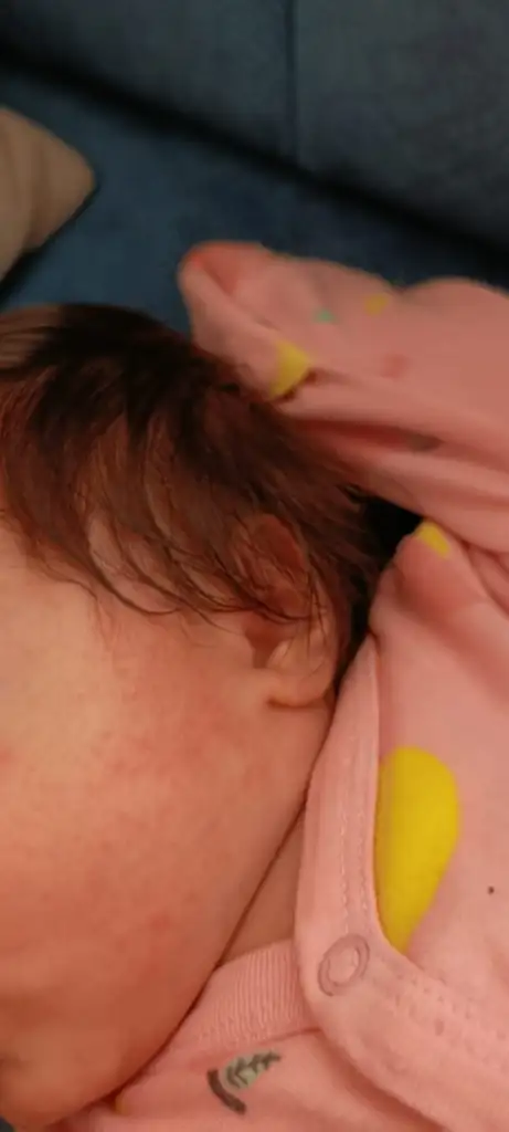 Balım resimde net gözükmüyor baya fazla var kafasının içinde kulağında vücudunda o yüzden alerji gibi geldi banaYenidoğan aknesine benziyor canım benimkinde de oldu. Yüzünü yıkadım günde birkaç kere, baya azaldı. Bi arkadaşa da mustelanın avokadolu yüz kremini tavsiye etmiş doktoru bu pıtırcıklar için
