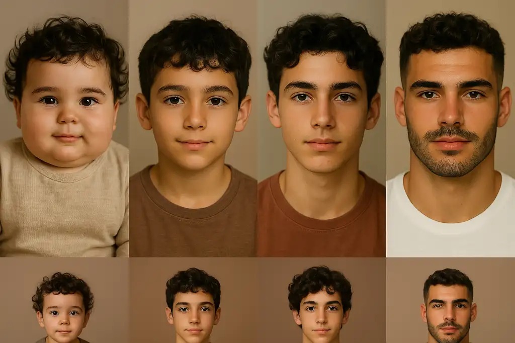 Fotoyu attım bu çifte benzeyen en gerçekçi çocuğu çiz bebeklik çocukluk ergenlik yetişkinlik dedim öyle çizdihangi komutu veriyorsunuz? benim chatgbt hiçbir şey yapmıyor![]()