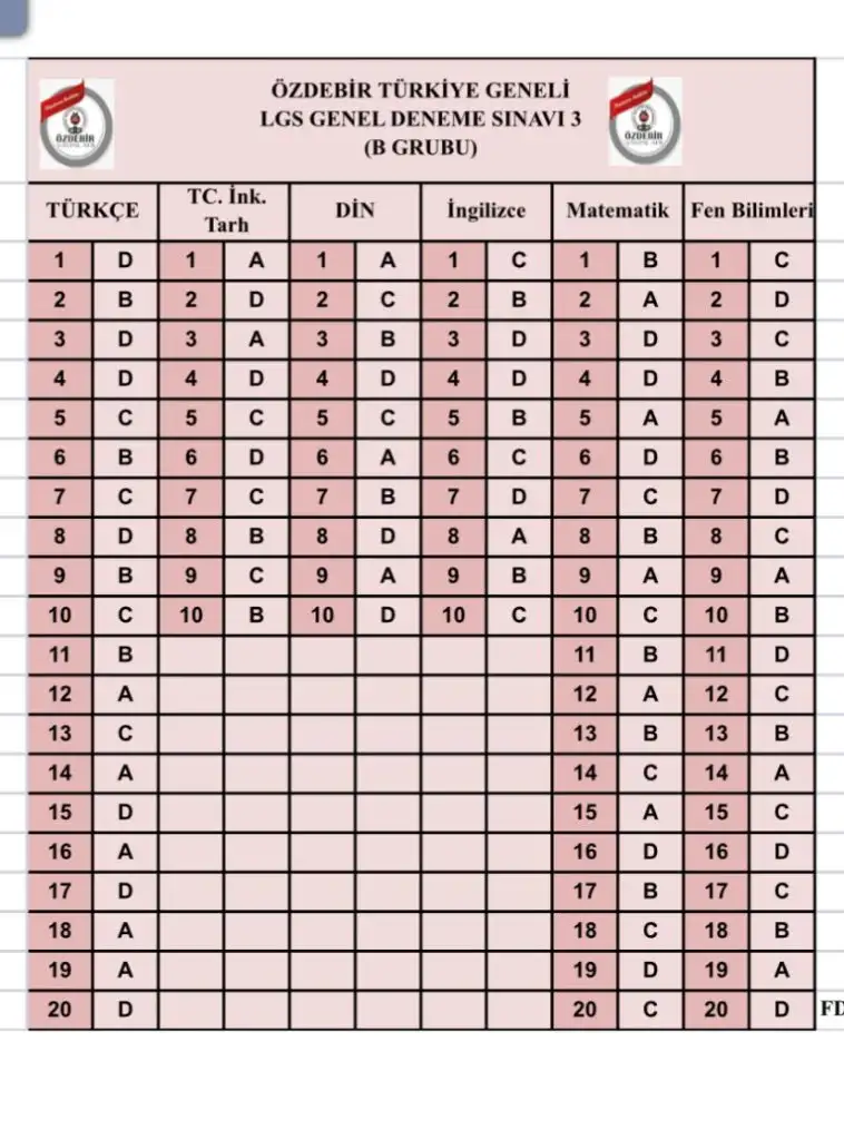 Ozdebir cevap anahtarı pazartesi günü yayınlanacakmış. Ama bulan varsa rica ediyorum bi bakalim da bu telaş da çıksın aradan
