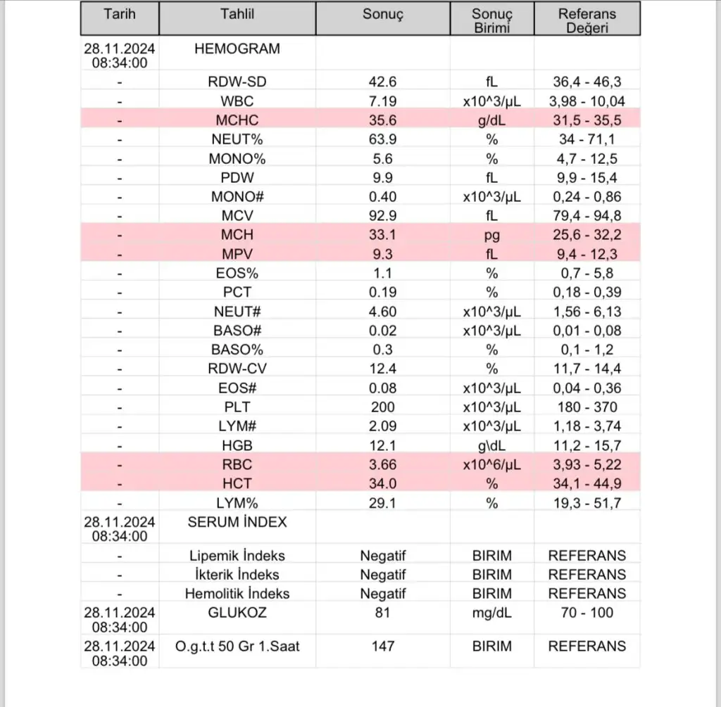 Ebuşşş evet bir tık yüksek çıkmış ama referans aralığında rakam yok