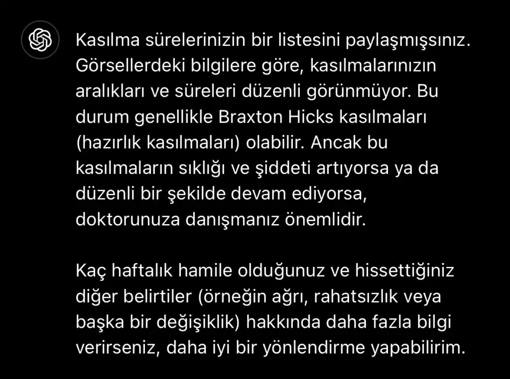 Kasılma sürelerini yapay zekaya attım böyle dedi bak