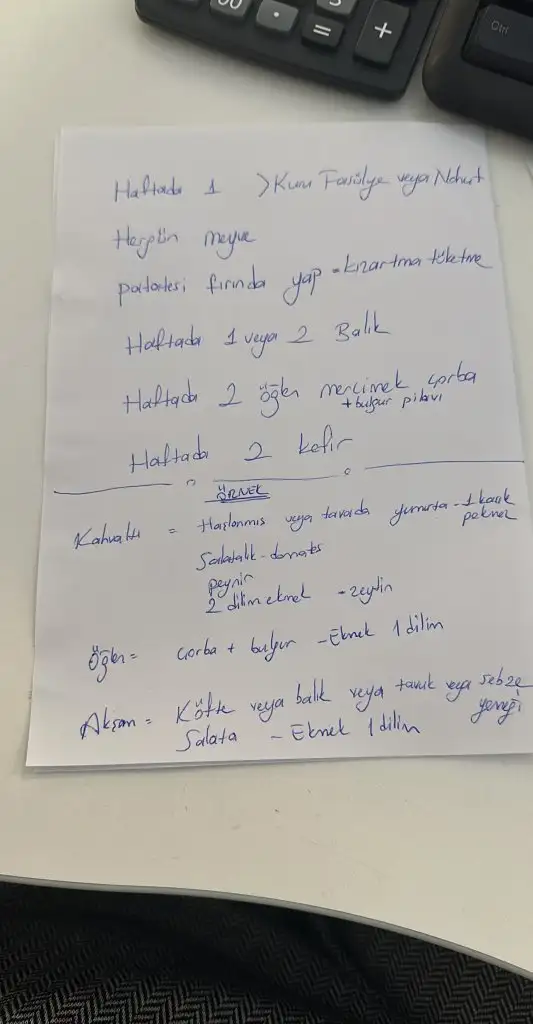Yaaa harikasınBen buzdolabına asmak ıcın kagıda yazdımpatates kızartmasını haftada 3 yıyodum onu kesıcem mantı makarna gozlemeyı kesıcem bıde ,boyle beslendıkmı bak pazara bır kılo gıdıcek