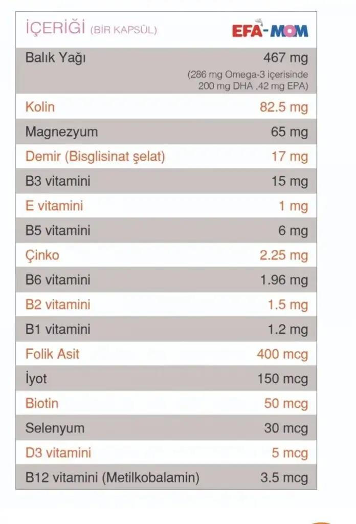 Canım doktor benim folik asiti kestikten sonra İMom verdi içinde folik asit var zaten dedi ama o bende çok mide bulantısı yaptı o yüzden şimdi EfaMom diye bi vitamin verdi bunu kullanıyorum şuan ekstra demir başlamadı dahakızlar demir ilacı olarak kullandığınız ilacın içinde folik asit var mı? Bir de onun yanında farklı kullandığınız bir vitamin var mı? Ben normal vitamin olarak ocean mumy kullanıyorum içinde 0.4 mg folik asit var. Doktor demir ilacı olarak Gyno Ferro Sanol verdi onun içinde de aynı miktar folik asit var. 12. hafta itibariyle zaten kesiyorlar da bu haftalarda iki yerden birden almak bana fazla geldiğinden bi korkmadım değil. Sizler nasıl, hangi demir ilacını kullanıyorsunuz?