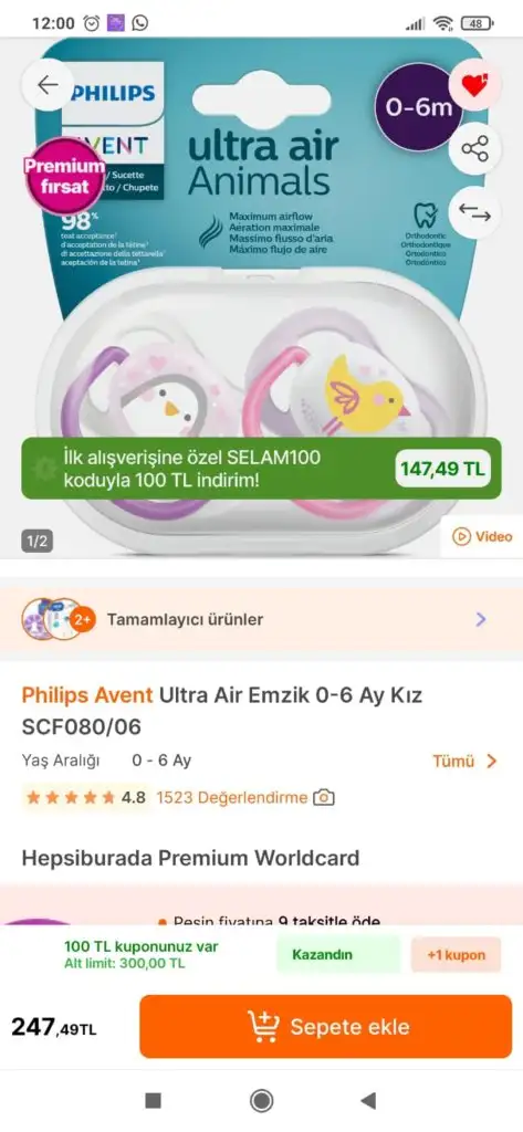 147 TL ye aldım bunu bende 100 TL ilk alışveriş için kupon verdi. Bir de premium aldım 1 TL ye kargo da vermedim 😂