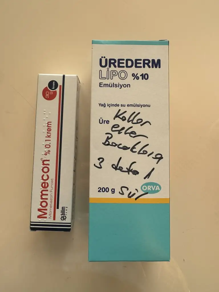 Cnm bende benzer bisey yasadim. Sag elimin ustunde egzamaya benzer bisey oluşmuştu. Sabun yada deterjan degdiginde kipkirmizi oluyor ve kaşiniyordu. Nemlendirici suruyordum ama pek ise yaramiyordu hatta daha cok yanıyordu. 1 ay falan bu sekilde devam etti suan gecti gibi. Ürederm guzel bir krem. Ablam surekli evinde bulundurur kullanir bende ara sira surerim gittigimde. Cok guzel onarici bir kremHamilelikte egzama yaşayan var mı? Kaç haftadır bu bela ile uğraşıyorum yadahiliye doktoru ürtiker demişti ama cildiyeye gittim dün egzama dedi. Şu iki ilacı verdiler kadın doğum doktorum kullanabilirsin dedi. Önce ayak üstünde başladı sonra ellerimin üstünde. Minik küçük sivilce gibi kabarıklıklar oluyor kaşınıyor falan. Hamilelikte bunu yaşayan var mı nasıl geçirdiniz