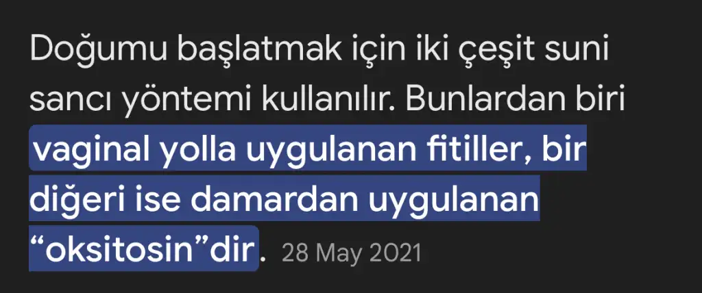 Bunu da bilmiyordumSezaryendan önce de veriyorlarmış, rahim kaslarını harekete geçirmek için. Doktor bana öyle anlattı.