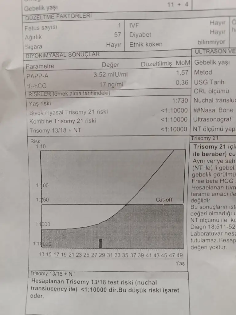 • Kombine Trizomi 21 riski: <1:10000 (Düşük risk).