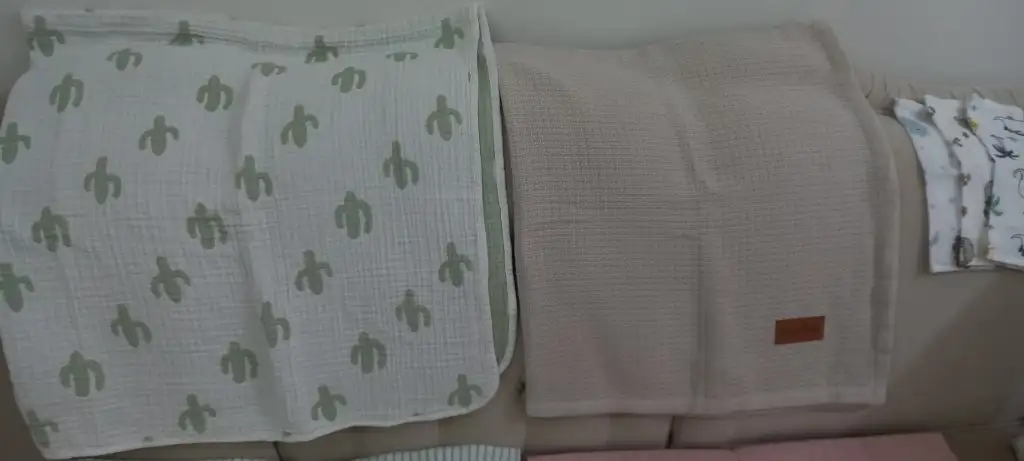 Kızlar son siparişlerim geldi, 4 katlı müslin battaniye, yün pike, 2 katlı ve tek katlı müslin örtüler aldım 🥰