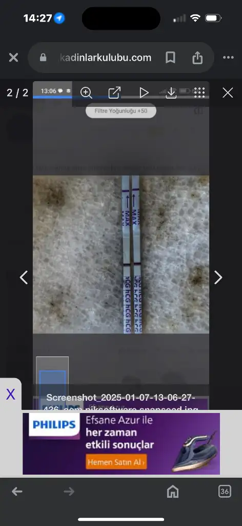 eva0108 Kızlar size durumu şöyle anlatacağım arkadaşımla konuştuk yarım saatlik idrarımla yaptım çok acaba adam kaldım 5 dakika sonra var mı yok mu falan diye konuşurken incecik çizgi var bence dedi bana bana da öyle geldi neyse tekrar 10 dakikada baktım sanki daha net görür gibi oldum işte biraz bekleyelim dedim varsa netleşecek kurudukça şimdi yarım saat falan oldu işte bu şekilde ayrıca daha önce evet geçen ay kuruma çizgisi gibi hissettim ama bembeyazdı saatler sonra görmüştüm şimdi başta acaba da kaldığım için durum bu orada bir şey var yani inkar edemiyorum ama kafam allak bullak oldu. İlk dakikalarda çıkan gölgeyi atayım daha sonra netleşmiş halini de atıyorum